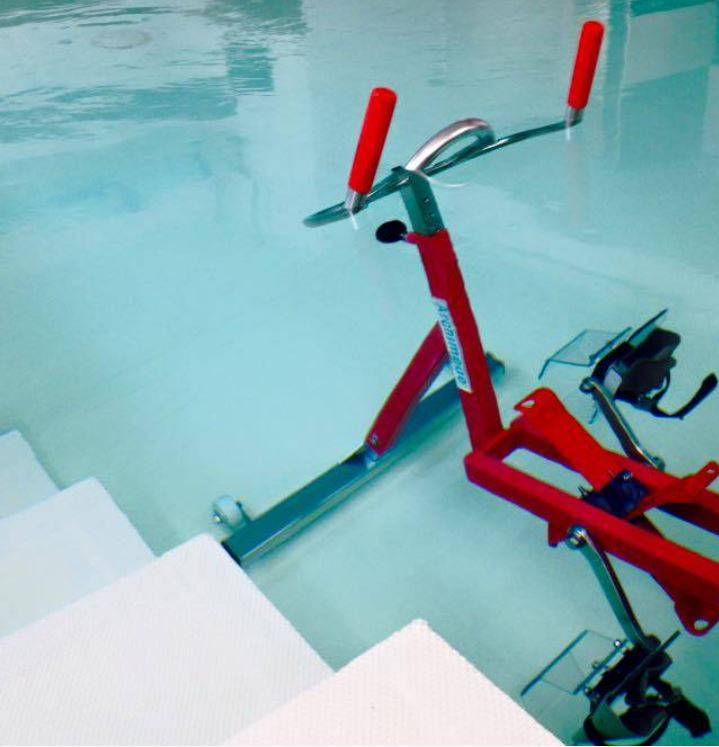 En effet l'eau permet de diminuer le poids corporel et donc de diminuer dans le même temps les contraintes des membres à rééduquer.